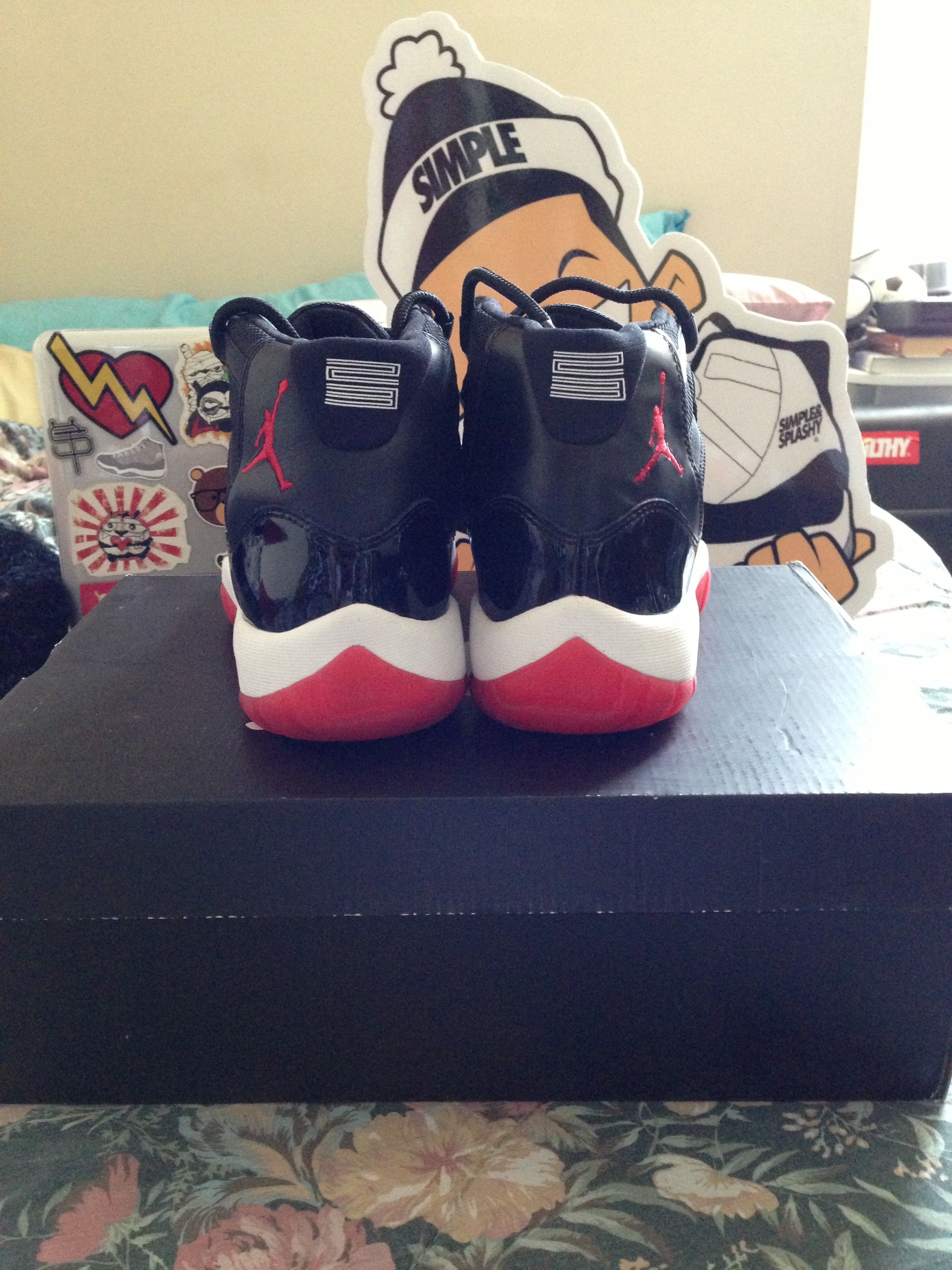 So I figured I wouldn’t be able to camp out this year, and I don’t really want to anyway, and figured resell price is higher than preorders regularly so I decided hey let me go ahead and get my breds. My opinion, I thought they were fake at first, but when I compared them to my Space Jams and my Concords, EVERYTHING checked out! The only thing I can blame is just the quality of Jordan’s these days. I may get over it sooner or later because last year I thought my Concords were fake too lol as well as my Metallic V’s but yeah, this could just be a B grade, or I could just be overreacting but as far as size they fit like LeBrons….small. But enough rambling, on to the pix.